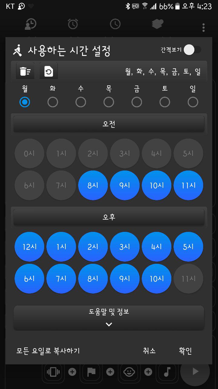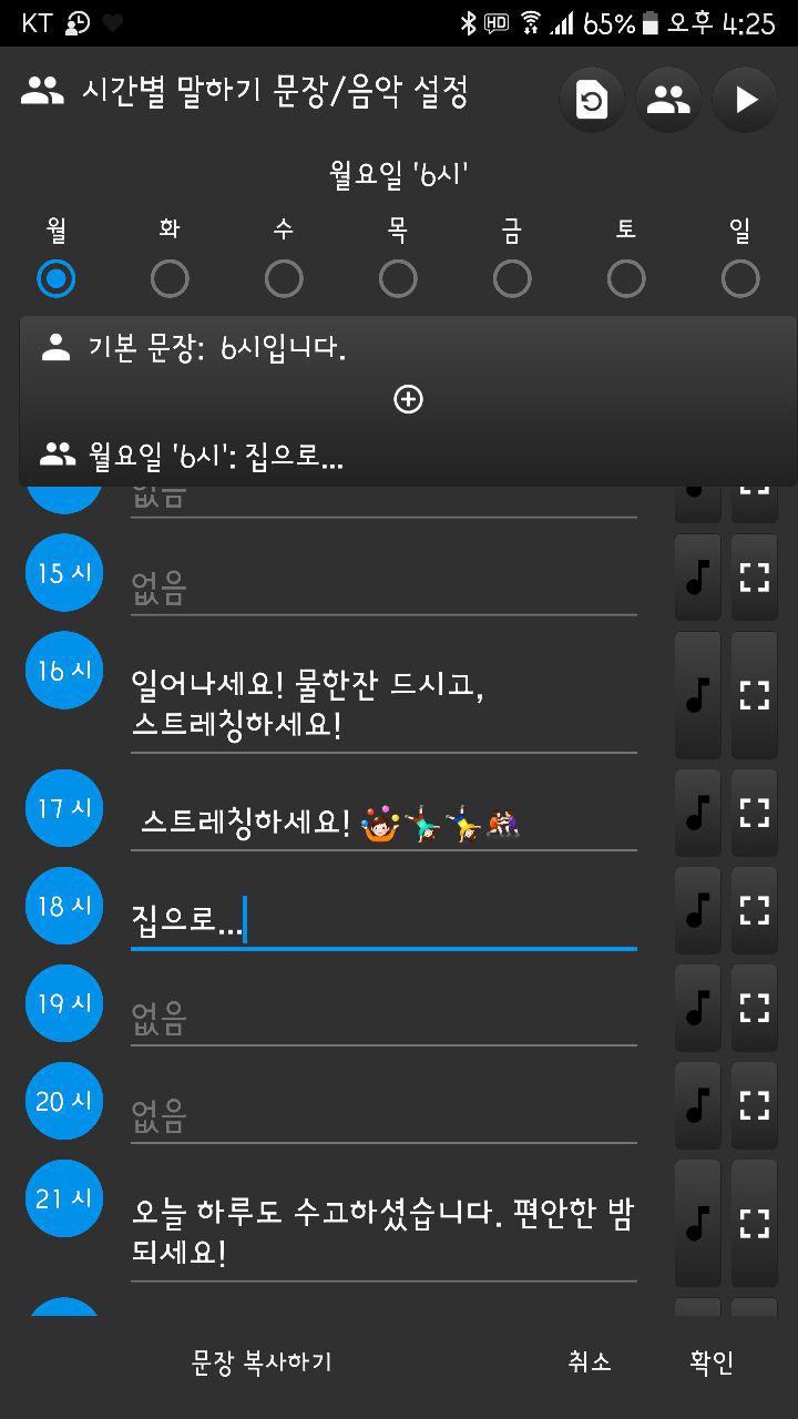 시간별로 요일별로 다른 시간, 다른 음악, 다른 문장을 듣고 볼 수 있습니다.