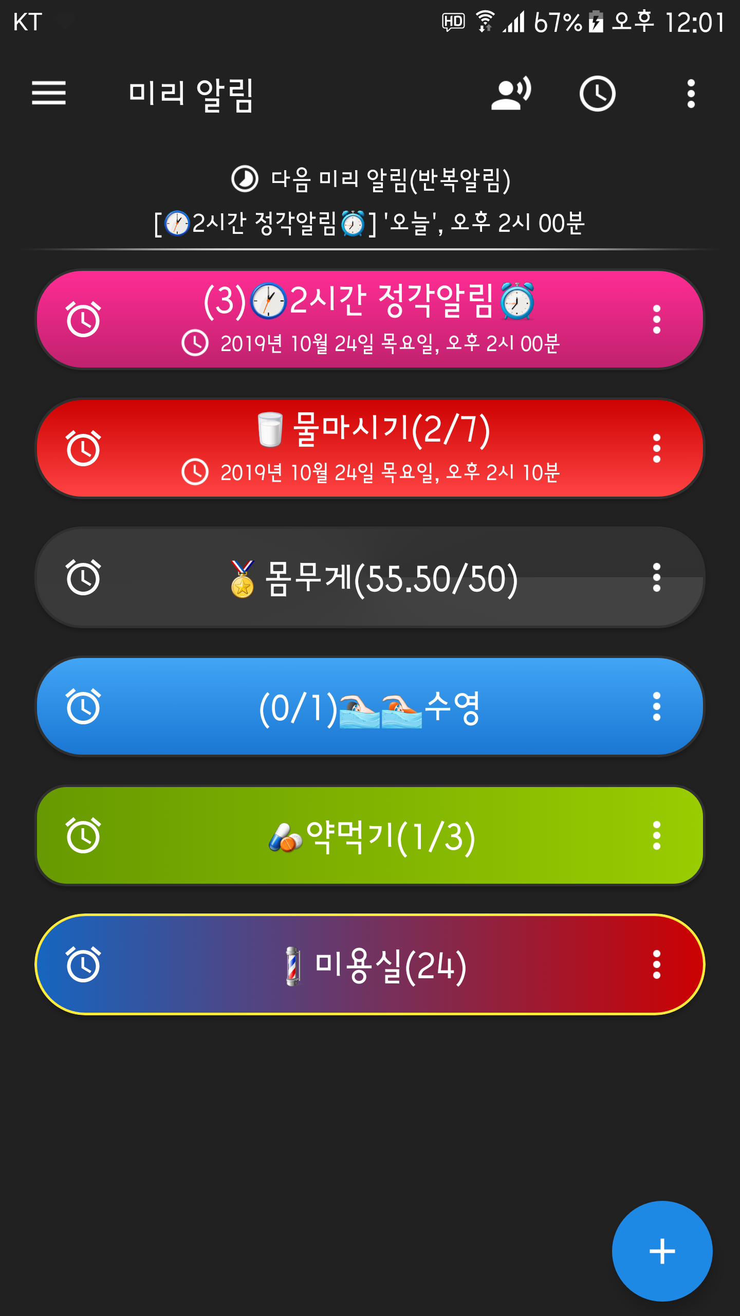 - 첫 화면이 탁상시계로 변경되어 정각알림/알람/미리 알림을 한눈에 볼 수 있습니다.